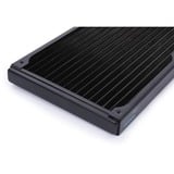 El radiador HPE de cobre completo NexXxos utiliza los mismos materiales que los modelos NexXxos anteriores, pero técnicamente va un paso más allá. Debido a la estructura interna compactada, se pudo aumentar el número de canales de agua y listones de cobre. Esto significa que un mayor volumen de agua está en contacto directo con las aletas de enfriamiento y la transferencia de calor se mejora enormemente. Debido al mayor número de filas de aletas y su acortamiento, la superficie de enfriamiento también se utiliza de manera mucho más eficiente. Debido a su baja altura de solo 20 mm, los radiadores compactos y delgados se pueden montar de manera muy flexible incluso en las carcasas más estrechas. El radiador HPE NexXxoS tiene una conexión IN y OUT con rosca G1/4" en el área de las precámaras. El radiador viene con todos los tornillos para montar en la carcasa, así como para montar los ventiladores. Por lo general, no se necesitan tornillos adicionales. El radiador HPE NexXxoS tiene un dispositivo de protección especial que evita que los tornillos de ventilador o montaje se atornillen demasiado profundamente. Las placas protectoras se colocaron debajo de todos los orificios de montaje para evitar que los tornillos se atornillaran demasiado profundamente. Esto protege las aletas de enfriamiento subyacentes y los canales de agua de daños.